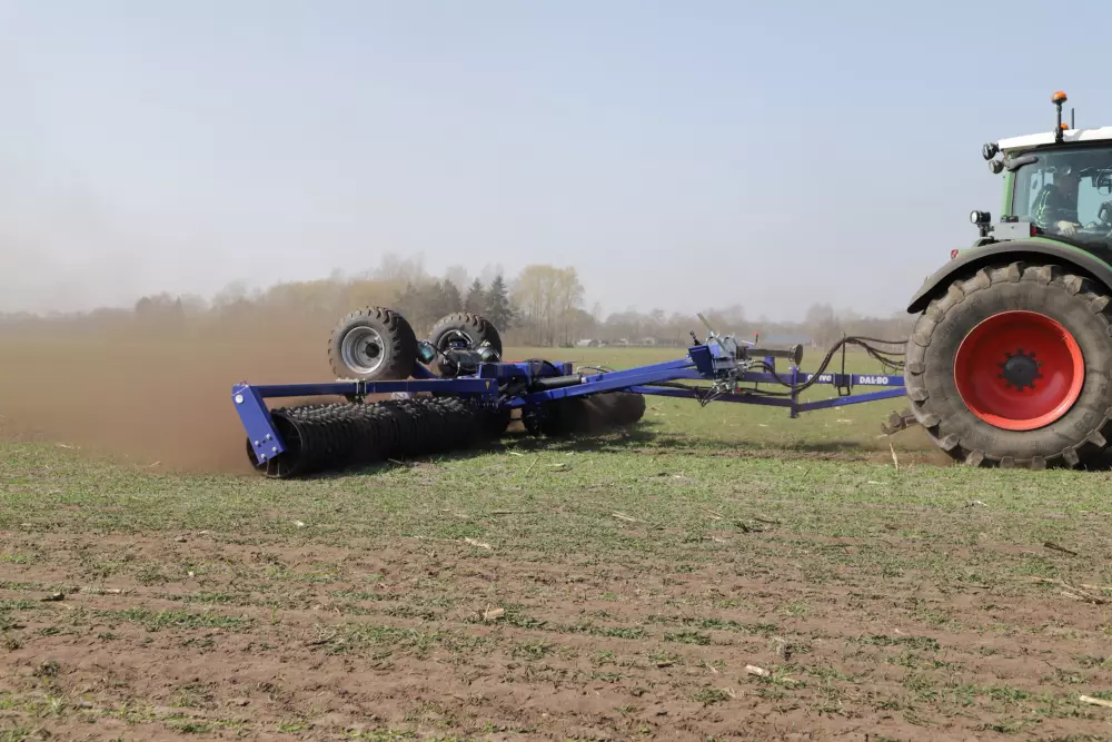 Třídílné, plně hydraulicky ovládané půdní válce DALBO s mechanickým přítlakem pracovních sekcí.